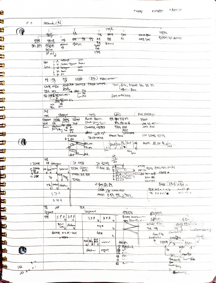 최애과목 컴퓨터네트워크로 바꾸겠습니다. 진짜 공부하면서 너무 재밌었고, 물리층부터 응용층까지 프로토콜, 용어, 작동과정까지 다 백지로 외워서 인출했습니다. 진짜 막판에는 컴퓨터네트워크로 뭘 내도 무조건 맞을거라고 생각했습니다