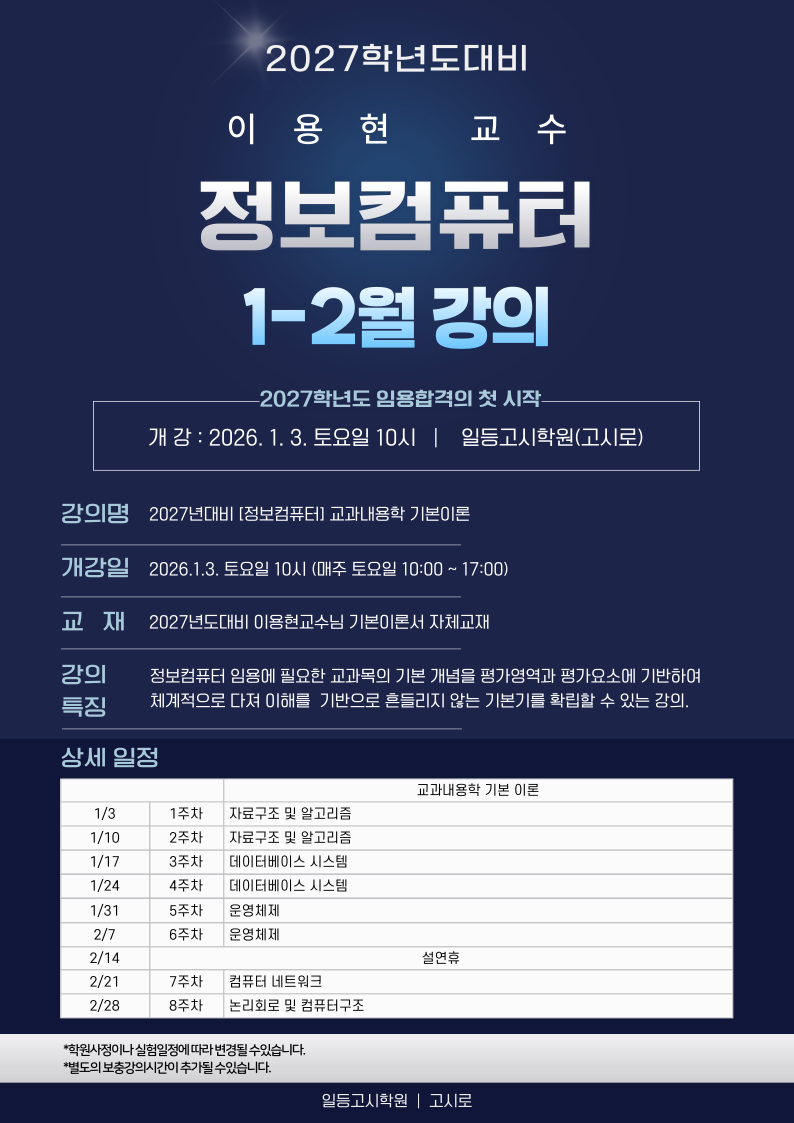 2027년대비 이용현정보컴퓨터(교과내용학) 기본이론 작성자정컴|작성시간25.11.15|조회수526 목록 댓글 0 글자크기 작게가 글자크기 크게가 다음검색 현재 게시글 추가 기능 열기 북마크 공유하기 신고 센터로 신고 댓글 댓글 0 댓글쓰기 답글쓰기 댓글 리스트
