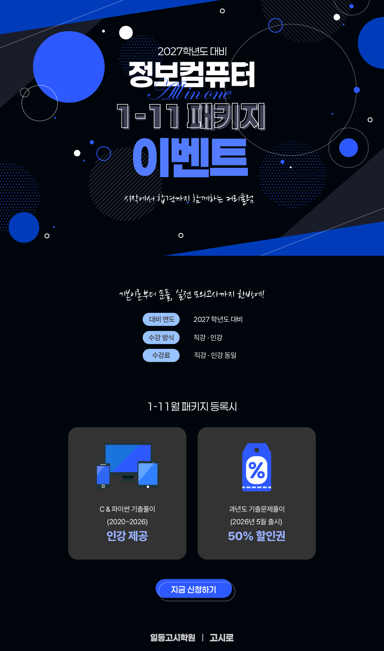 2027학년도 이용현교수님의 1-11월 패키지 이벤트 안내 작성자정컴|작성시간26.01.03|조회수210 목록 댓글 0 글자크기 작게가 글자크기 크게가 https://www.gosiro-q.co.kr/App/Lecture/?glt_id=GLT_100416172516&gll_id=GLL_251025161631 다음검색 현재 게시글 추가 기능 열기 북마크 공유하기 신고 센터로 신고 댓글 댓글 0 댓글쓰기 답글쓰기 댓글 리스트