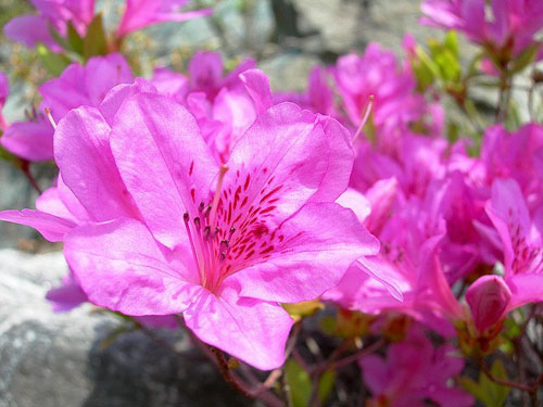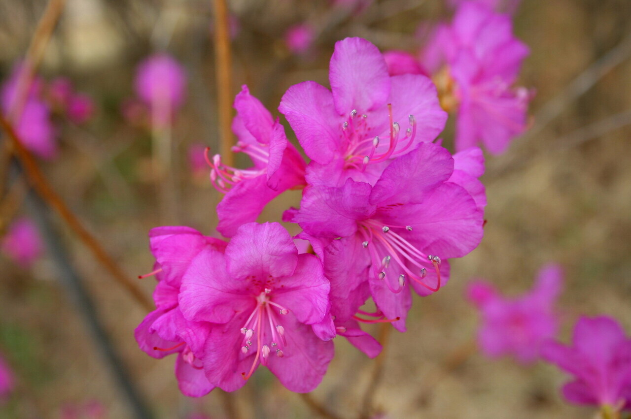 이제 바야흐로 꽃피고 새우는 계절이 왔어요 봄을 가장 먼저 알리는 꽃은 생강나무 꽃이고 다음이 산수유꽃이지요 그러다 보면 어느샌가 개나리 진달래 철쭉꽃도 피어나지요 그런데 진달래와 철쭉은 꽃이 비슷하여 잘 구분하지 못하는 경우가 많아요 설사 이 두 종류을 구분한다 하더라도 개량철쭉과 산철쭉을 구분하기는 더욱 어렵지요 이들을 구분하지 못하는 이유는 진달래와 철쭉 모두 진달래과의 같은 속(진달래속)에 속하는 비슷한 꽃들이기 때문이지요 그래서 전문가가 보기에는 상당히 다른 특징을 가지고 있지만 초심자들의 눈에는 그꽃이 그꽃인냥 모두 비슷하게 보일수 밖게 없어요 그럼 먼저 진달래의 사전적 의미를 알아보면 진달래꽃의 원래 이름은 '달래꽃'인데 옛날에는 '달외꽃'이었다 하지요 여기서 '달외꽃'은 바로 "산에 피는 꽃"을 의미한다 하는군요 그리고 사람이 먹을수 있는 달래꽃을 "참달래꽃(참꽃)"이라 했으며 사람이 먹을수 없는 달래꽃을 "개달래꽃(철쭉꽃)"이라 했는데 참달래꽃의 참 자를 한문으로 표기하면 참 진(眞)가 되기에 참진(眞)자를 붙여 '진달래꽃"이 되었다 하네요 옛날 중국 촉(蜀)나라에 두우(杜宇)라는 천신(天神)이 살았는데 두우 천신은 인간을 너무도 사랑하여 인간세상에 내려와 농사짓는 것을 가르처 주었어요 그러다보니 백생의 신망을 받게되어 촉의 황제(皇帝)가 되었지요 그뒤 두우가 다스리던 촉나라는 위나라에 망하게 되고 두우는 산속으로 도망쳐 복위(復位)을 꿈꾸었으나 뜻을 이루지 못하고 죽어 그 혼(魂)이 새가되어 두견(杜鵑)이 되었지요 새가된 두견은 한이 맺혀 밤낮없이 "귀촉~ 귀촉~"하며 슬퍼 울었어요 촉나라로 돌아가고 싶은 마음으로 " 귀촉(歸蜀)~ 귀촉~ " 하면서 .... 그래서 지금도 두견새는 귀촉 귀촉하며 울고 있으며 두견새 이름을 귀촉도(歸蜀道)라 부르기도 하지요 죽은 망제(望帝)의 혼이된 두견새는 밤낮없이 울다보니 그 맺힌 한으로 피를 토하며 울고 또한 피를 삼키며 울었는데 그 피가 땅에 떨어져 진달래 뿌리에 스며들어 진달래꽃이 붉어졌다 하는군요 그래서 그런지 두견새는 새봄이 되면 슬피 우는데 특히 진달래꽃이 필때면 더욱 슬피 운다 하지요 그 슬피 우짖는 소리에 진달래 꽃잎이 하나씩 떨어진다는 두견새의 전설이 있어요 달래꽃은 "참꽃" 또는 "두견화"라고도 부르는데 전국의 50~2000m 높이의 산야에서 무리지어 자라고 높이는 2∼3m이고 줄기 윗부분에서 많은 가지가 갈라지며 작은가지는 연한 갈색이고 비늘조각이 있다 하지요 꽃은 이른봄에 꽃전을 만들어 먹거나 진달래술(두견주)을 담그기도 하며 한방에서는 꽃을 영산홍(迎山紅)이라는 약재로 쓰이는데 해수·기관지염·감기로 인한 두통에 효과가 있다 하네요 진달래는 잎이 나기 전인 4월초부터 4월말까지 전국의 산과 들에 꽃을 피우는데 산성 토양에 강한 나무 이므로 어떤 산에 이 식물이 대 군락을 이룬다면 그 산의 토양은 그리 좋은편이 아니므로 이런 면에서 진달래가 화려하게 수놓은 산을 마냥 좋다고만 할수 없는 일이라 하는군요 또한 북한의 국화를 진달래로 잘못 알고 있기도 하는데 북한의 국화는 진달래꽃이 아니고 산목련이라 부르는 함박꽃나무 이지요 또한 철쭉꽃은 진달랫과에 속한 낙엽 관목식물이며 5월에 진달래꽃과 비슷한 분홍, 연분홍 색깔의 꽃을 무리 지어 피우며 10월에 열매가 익는데 우리나라, 일본, 만주 등지에 분포 하고 있어요 철쭉꽃은 사랑의 기쁨이란 꽃말을 가지고 있으며 5월이면 분홍빛으로 산을 물들이는 토종꽃이지요 철쭉은 원래 '척촉(擲燭)'이라는 한자에서 음이 점점 변해 결국 발음하기 쉽게 철쭉이 되었다는 설이 유력한데 언급한 척촉이라는 한자의 뜻은 '머뭇거린다'는 뜻이지요 다시말해 길을 가다가 철쭉을 보고 아름다워 머뭇거린다는 뜻이 담겨 있어요 철쭉꽃은 전국의 계곡이나 높은 산 능선에 분포하는데 잎이 꽃보다 먼저 나고 잎 모양은 긴 타원형이며 잎에 털이 많고 점액 성분이 있어 만지면 끈적거리지요 잎 뒷면의 맥 위에는 갈색 털이 빽빽하게 나와있구요 그럼 여기서 진달래와 철쭉의 구분을 어떻게 할까요? 진달래와 철쭉을 쉽게 구별하는 방법은 꽃과 잎이 언제 피었느냐로 구분하는 방법이 있는데 진달래는 꽃이 먼저 피고 꽃이 지면서 잎이 나오고 철쭉은 잎이 먼저 나오고 꽃이 피거나 꽃과 잎이 같이 핀다 하네요 그리고 사람이 먹을수 있는 꽃은 진달래꽃이고 사람이 먹을수 없는꽃이 철쭉 꽃이지요 그러나 철쭉꽃은 진달래꽃에 비해 다양한 색상을 가지고 있고 화려하여 많은 이들의 사랑을 받고있어 요즘 길옆이나 공원등 조경수로 가장 많이 쓰이고 있지요 중국에서는 산철쭉을 산척촉(山足蜀)이라 부르는데 우리말 ‘철쭉’의 어원이라는 설이 있어요 또「해동역사(海東歷史)」같은 우리나라 고전에 철쭉을 척촉(足蜀) 또는 양척촉(羊足蜀)이라 기록되어 있는데 척촉(足蜀)은 "사람으로 하여금 가던 길을 더 가지 못하고 머뭇거리게 한다"는 뜻이 담겨 있으며 철쭉꽃의 아름다움에 반하여 가던 길을 멈춰 서서 넋을 잃고 바라보고 섰는 정경을 연상하는 이름이라 하네요 또한 양척촉(羊足蜀)