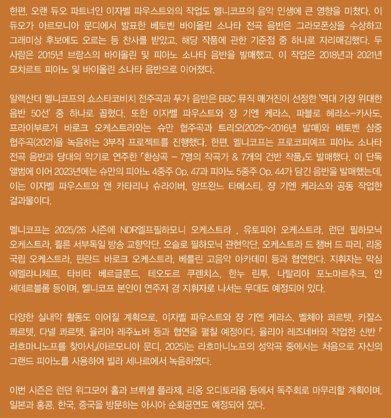 곡들이다. 왜 그녀를 세계 최고라고 하는지, 왜 이 프로그램을 듀오 콘서트라고 하는지 멜니코프의 최상의