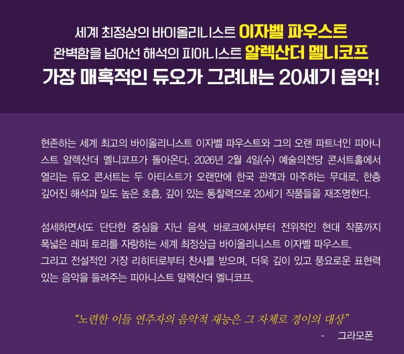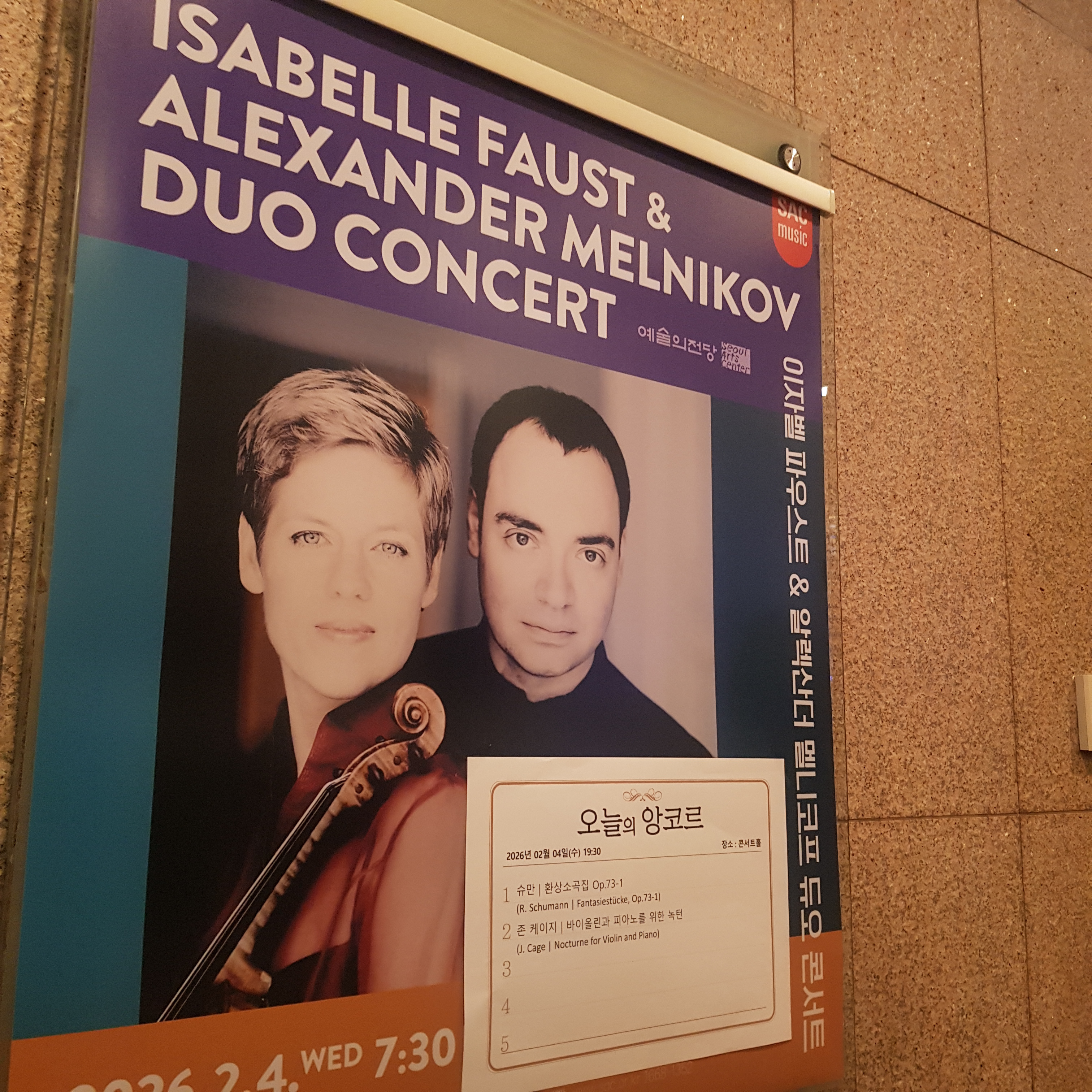 이자벨 파우스트와 그의 파트너 알렉산더 멜니코프의 듀오 콘서트를 다녀왔다.