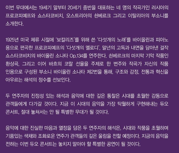 되지 않을 것 같다. 타고난 재능이 있어야 가능할 듯 하다. 멋진 연주를 들려준 두 사람의 다음 내한 연주도