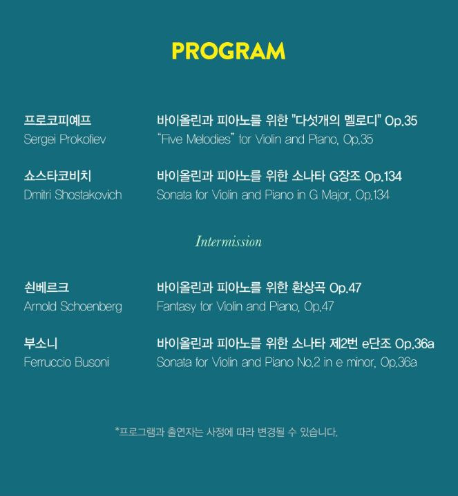 오늘의 레퍼터리는 내가 좋아하는 프로코피예프와 쇼스타코비치, 그리고 쇤베르크와 부소니의 주옥같은