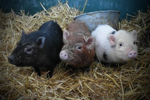 서로 다른 털 색을 가진 농가의 새끼돼지들. 보통 농장에서 기르는 돼지는 100kg 이상이 될 때까지 자란다. ⓒ J P at Flickr