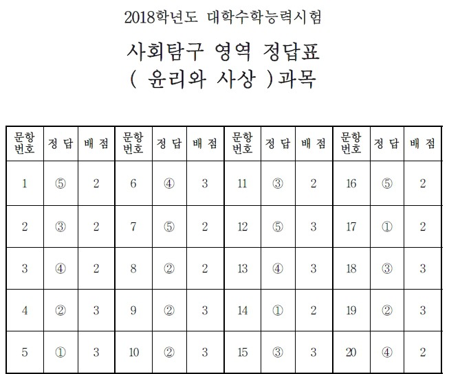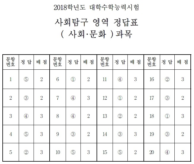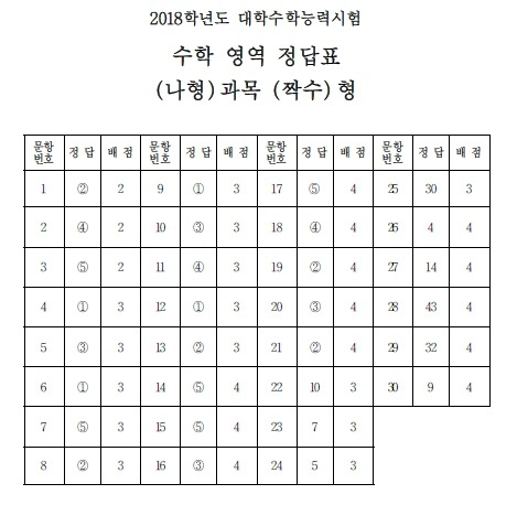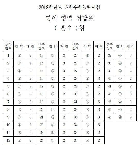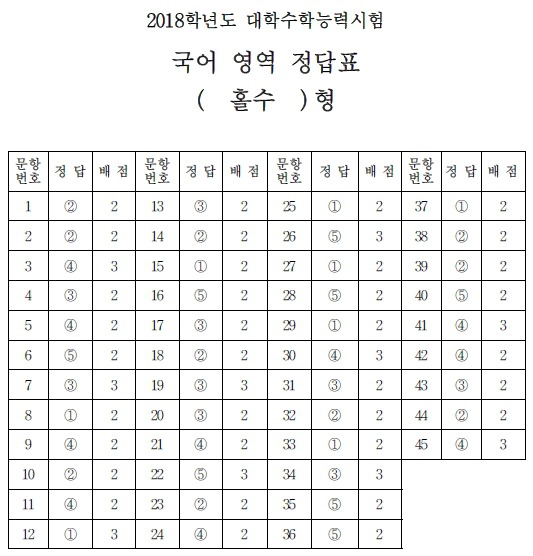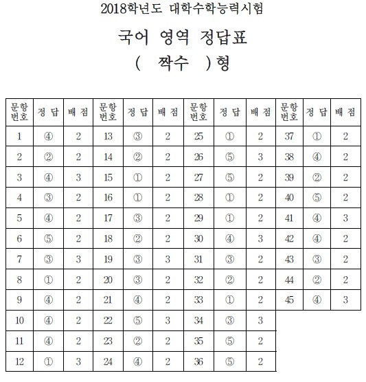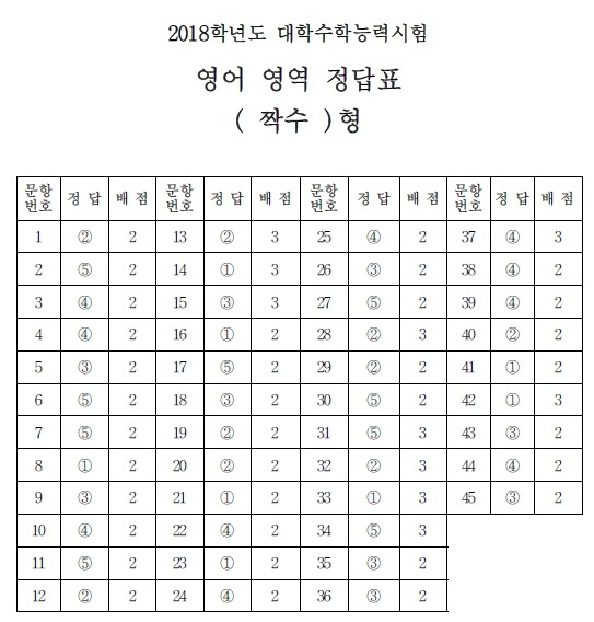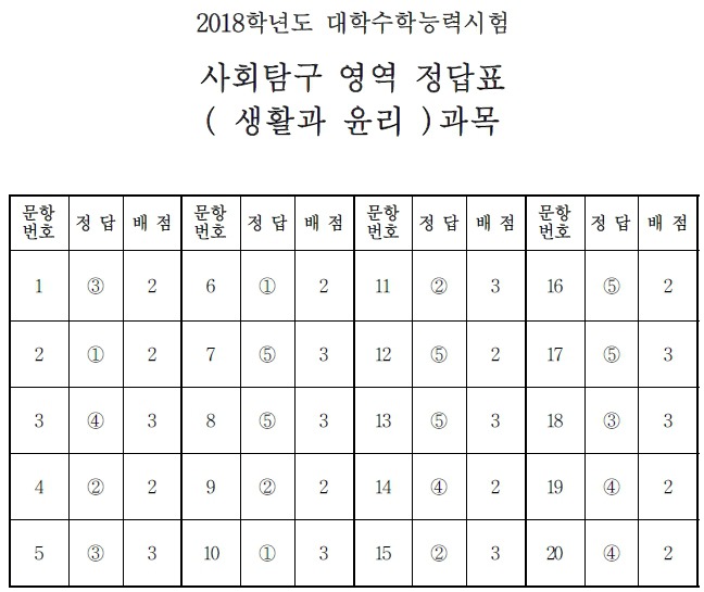 2018학년도 대학수학능력시험 정답지 작성자01부산|작성시간17.11.23|조회수33 목록 댓글 0 글자크기 작게가 글자크기 크게가 2018학년도 대학수학능력시험 1.2.3교시 정답지. -출처-한국교육과정평가원 -미래의 가치와 가능성 진단- 에듀비전컨설팅 http://eduvisionconsulting.foredu.kr 다음검색 현재 게시글 추가 기능 열기 북마크 공유하기 신고 센터로 신고 댓글 댓글 0 댓글쓰기 답글쓰기 댓글 리스트