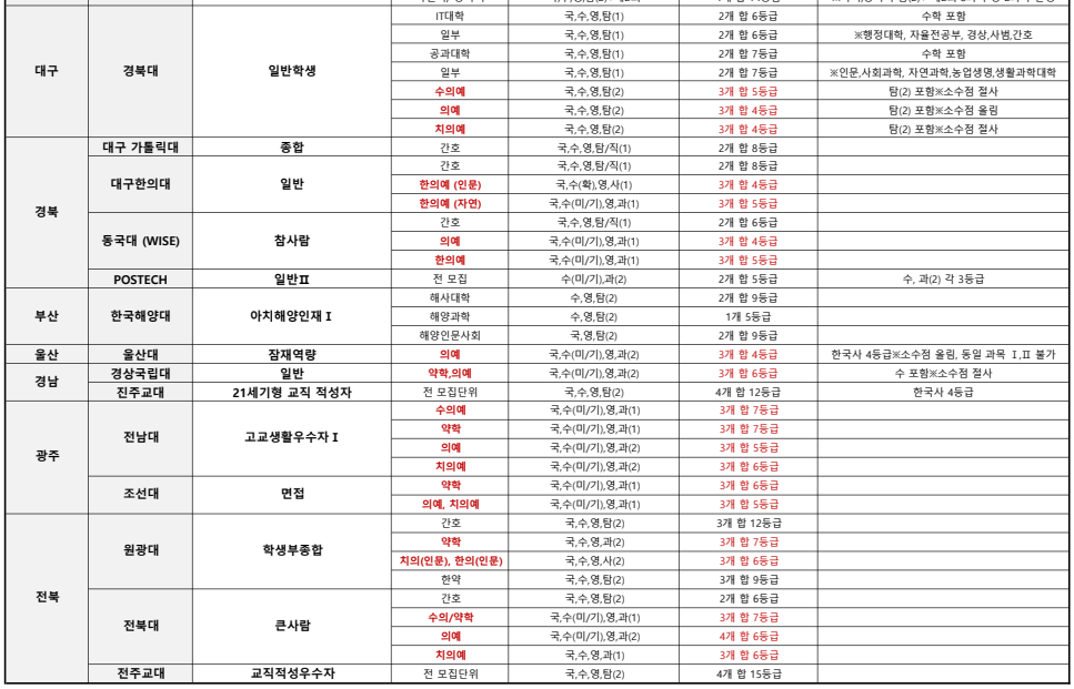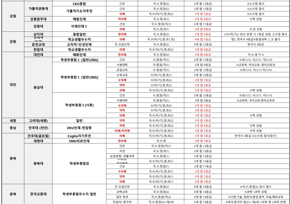 2. 하지만 의료 계열에서는 대부분 대학의 학과에서 수능 최저가 존재한다.
