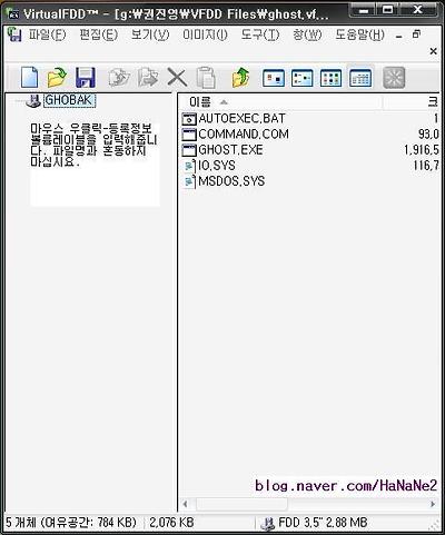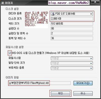 (다른 방법으로는, 만들어진 ghost.vfd 파일을 따닥, 실행 클릭, 확인 클릭.)