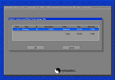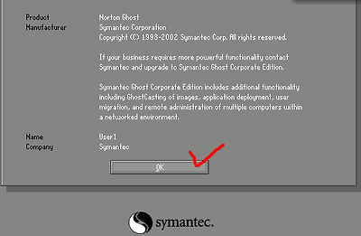 2. 고스트 부팅드스켓으로 부팅한 첫 화면입니다. OK 버튼을 클릭하세요.