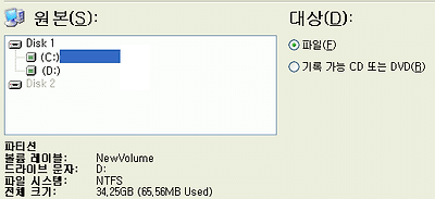 32. 원본 이미지를 선택하시고 대상에 복원할 지점을 선택하시면 됩니다. (윈도우의 복구 이므로 C:를 선택하시고 다음 작업을 진행하세요.