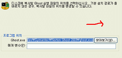 18. 고스트 실행파일의 경로를 지정해주는데 고스트를 설치했을 때 기본값으로 설치를 하였으니 다음 버튼을 클릭압니다, 만일 고스트를 다른 드라이브에 설치가 되었다면 찾아보기 버튼을 클릭하여 고스트가 설치된 실행파일을 클릭하여 주면 됩니다.