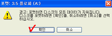 24. 포맷이 완료되면 확인 버튼을 클릭하시어 다음 작업을 진행하세요.
