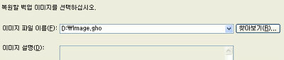 4. 콤보 버튼을 클릭하시어 고스트 백업 이미지가 있는 경로를 찾아가서 백업된 image.gho 파일을 선택하시고 다음 작업을 진행하십시오.