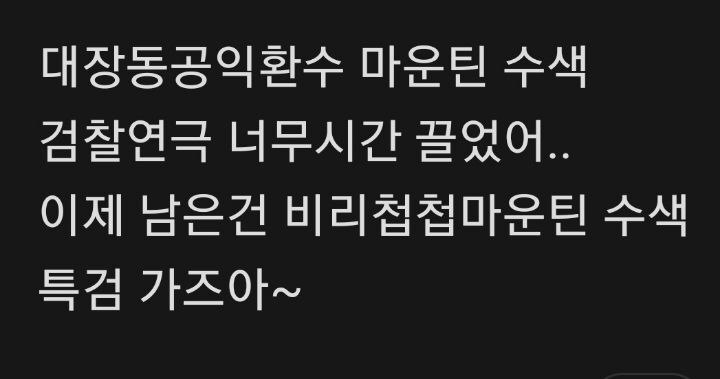 대장동' 1초만에 이해하기 작성자카르마|작성시간21.11.29|조회수148 목록 댓글 1 글자크기 작게가 글자크기 크게가 다음검색 현재 게시글 추가 기능 열기 북마크 공유하기 신고 센터로 신고 댓글 댓글 1 댓글쓰기 답글쓰기 댓글 리스트 작성자김균태(전남광주) | 작성시간 21.11.29 국힘당 똥덩어리들 꼬라지 하고는 댓글 전체보기