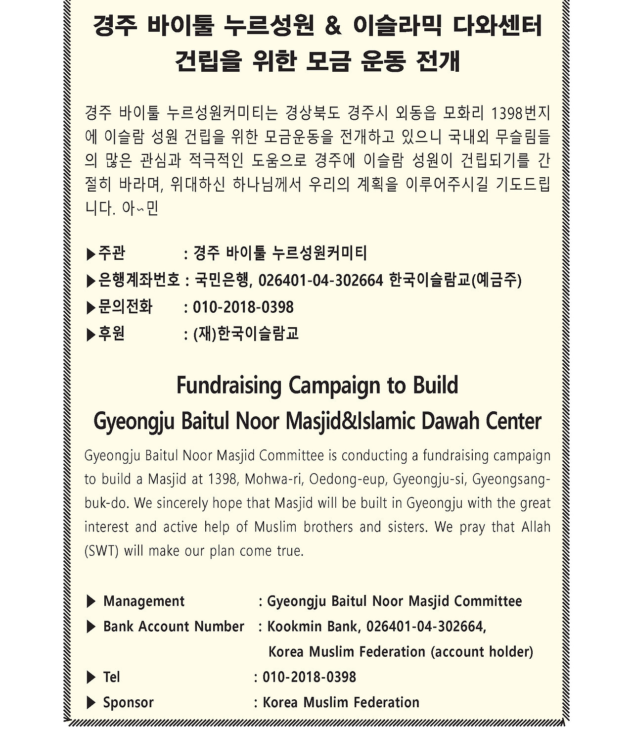 경주 바이툴 누르 성원 건립을 위한 모금 작성자알리|작성시간24.10.10|조회수11 목록 댓글 0 글자크기 작게가 글자크기 크게가 다음검색 현재 게시글 추가 기능 열기 북마크 공유하기 신고 센터로 신고 댓글 댓글 0 댓글쓰기 답글쓰기 댓글 리스트