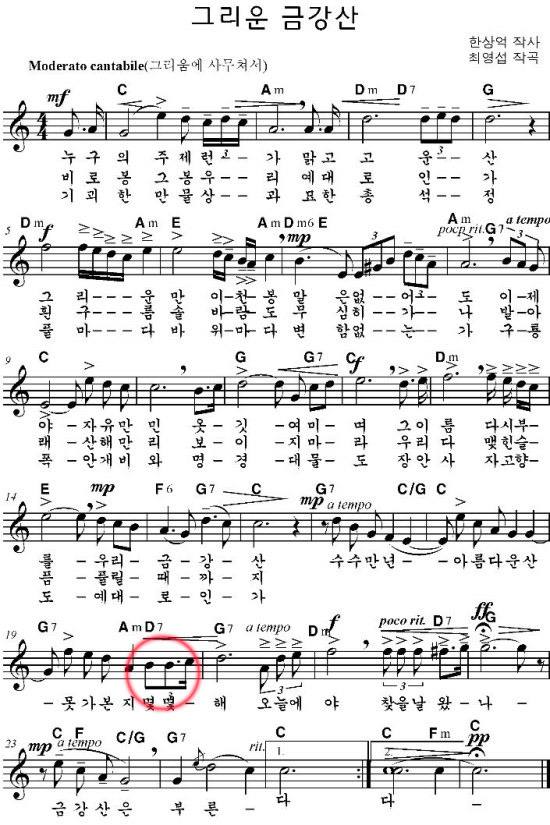 아래 그리운 금강산 악보에서 붉은색 동그라미 친 부분의 셋잇단음표입니다.