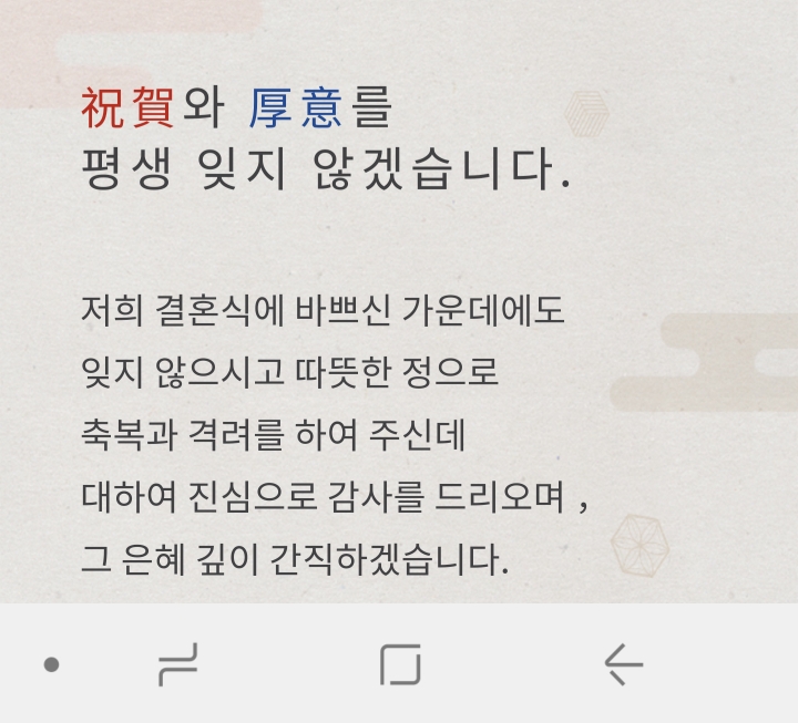 결혼 답례인사 작성자자유비행|작성시간18.10.28|조회수260 목록 댓글 5 글자크기 작게가 글자크기 크게가 많은 분들이 참석하여축복해주시고 ~마음으로 축하해주셔서감사하고 고맙습니다. 다음검색 현재 게시글 추가 기능 열기 북마크 신고 센터로 신고 댓글 댓글 5 댓글쓰기 답글쓰기 댓글 리스트 작성자동키(송동규) | 작성시간 18.10.28 축하~~^ 이미지 확대 작성자crow | 작성시간 18.10.28 편한밤 되세요. ㅊㅋ드립니다. 작성자비상(이성환) | 작성시간 18.10.29 한시름 놓으셨네요~ 뱅기 타실 일만ᆢ 작성자아이에스(양성운) | 작성시간 18.10.29 신랑이 거의 연예인급 이던데요. 작성자불사조(김성구) | 작성시간 18.11.20 아니 윤고문 딸 출가시킨거야???단체 메세지도 난 못받았는데.... 댓글 전체보기