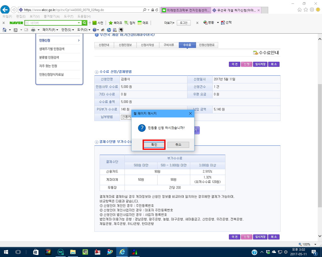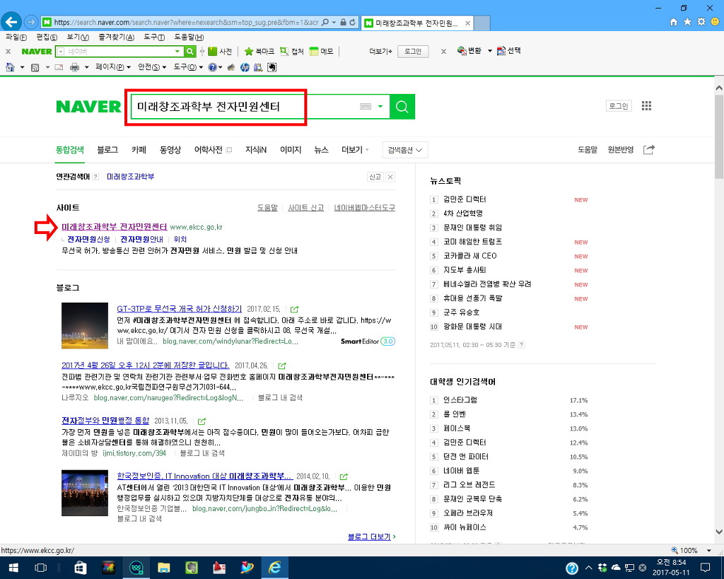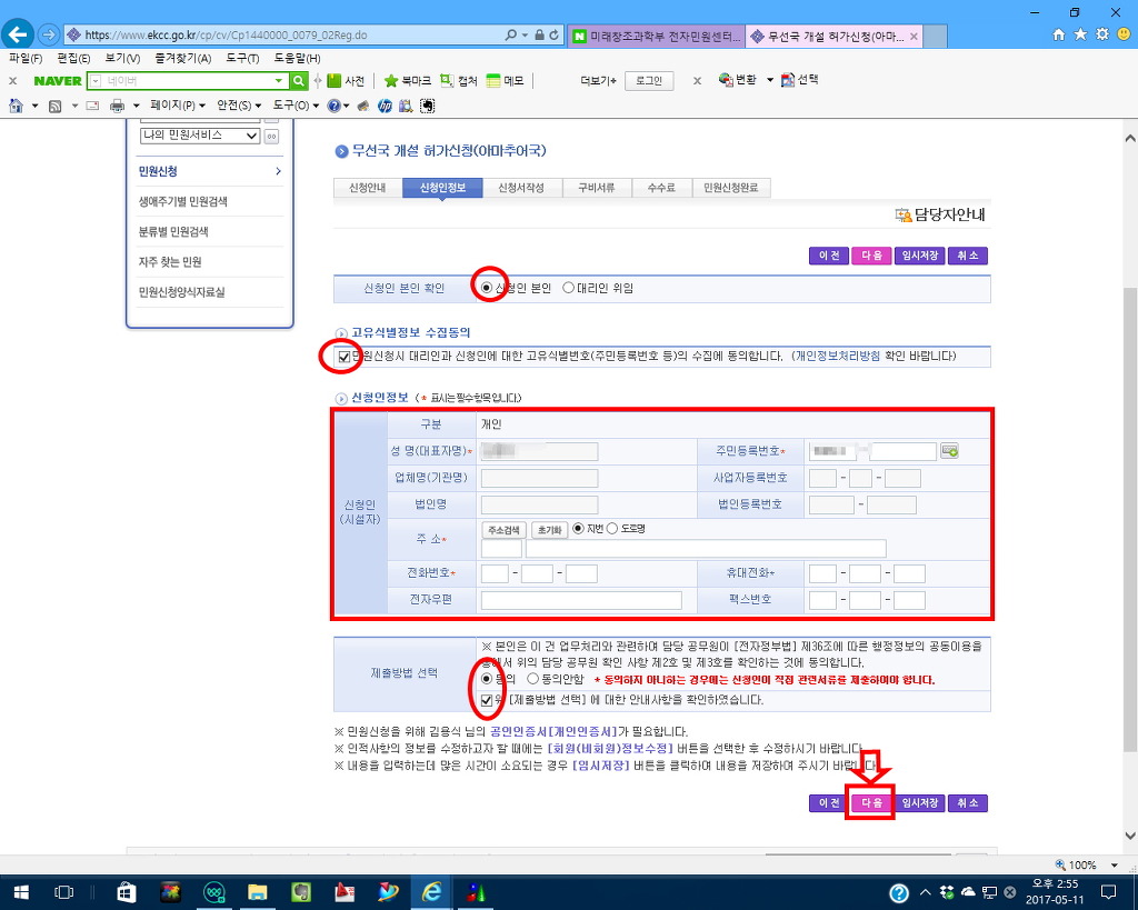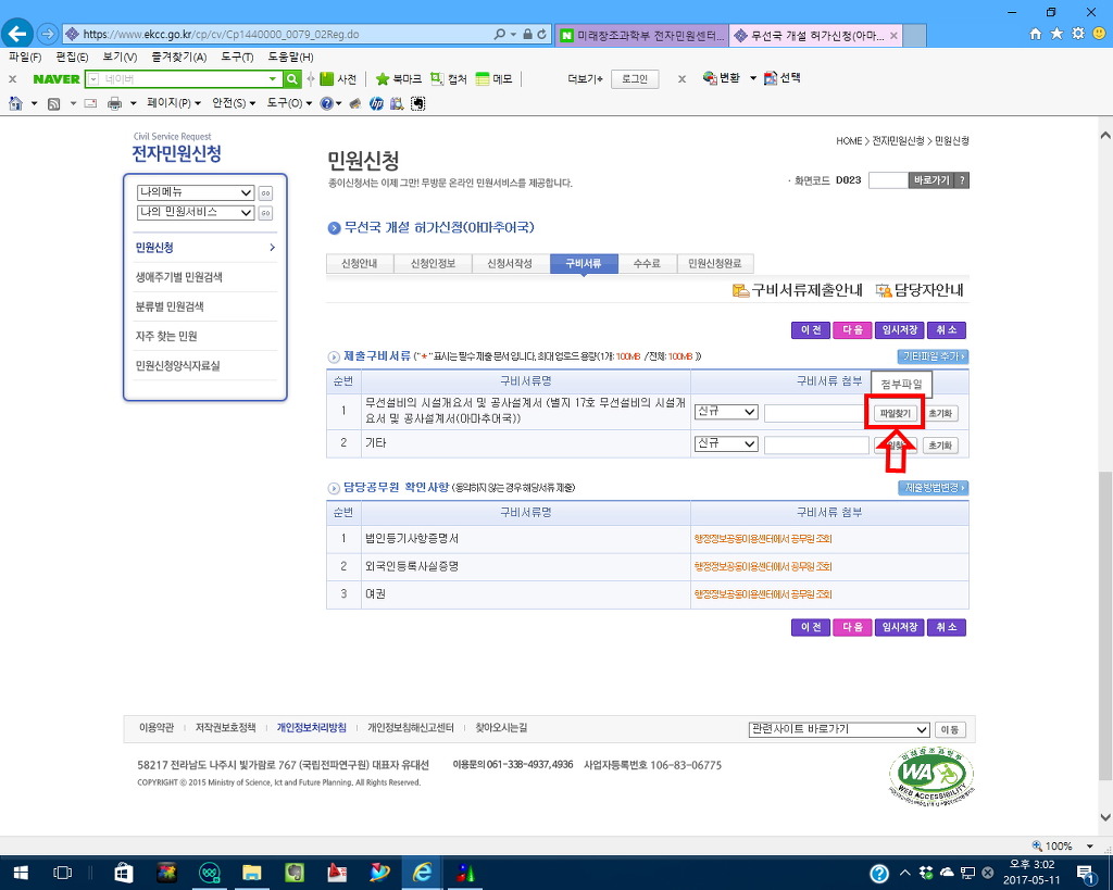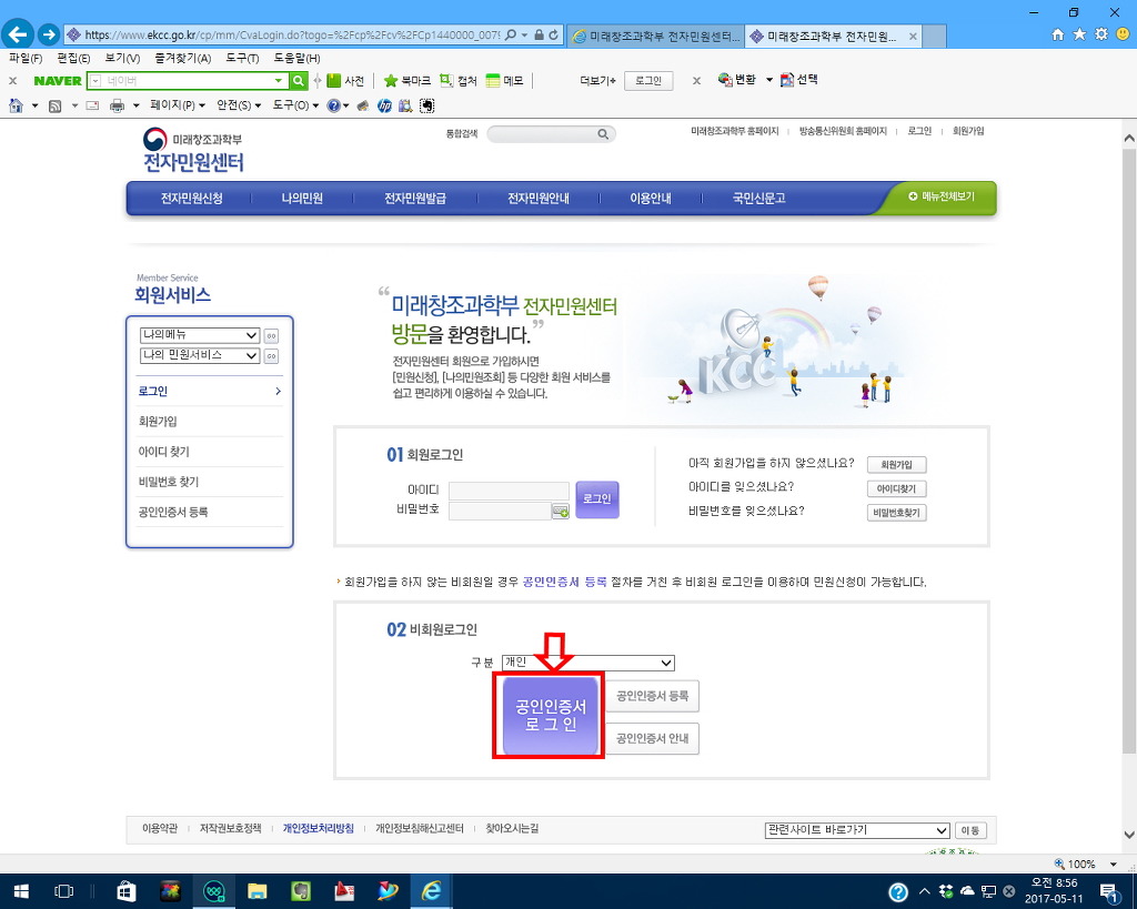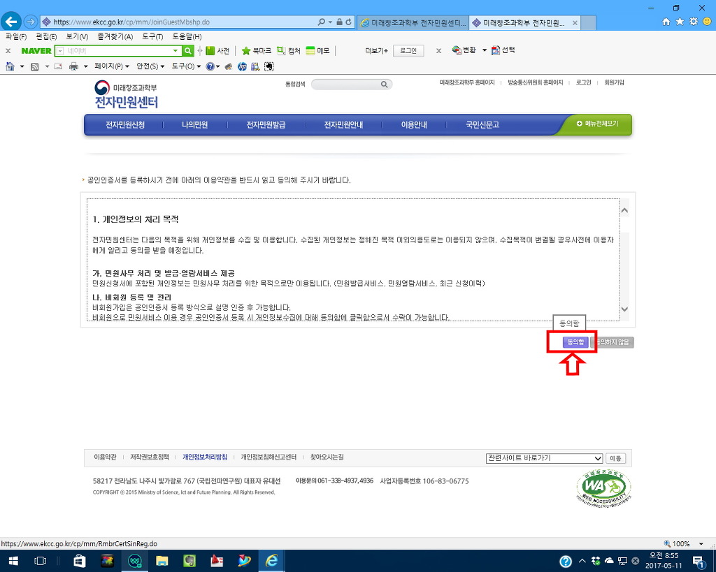 공인인증서를 준비하신 후 인터넷에서 미래창조과학부 전자민원센터를 검색하신 후 클릭....