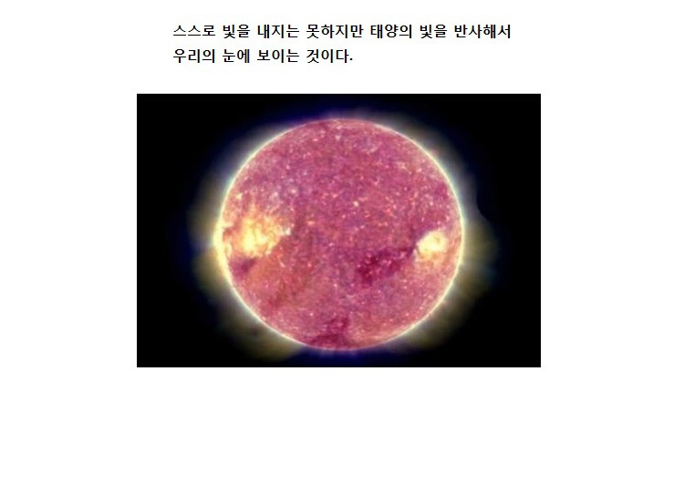 지구 밖으로 나오면 태양의 빛을 반사를 하여 보름달이 보이고