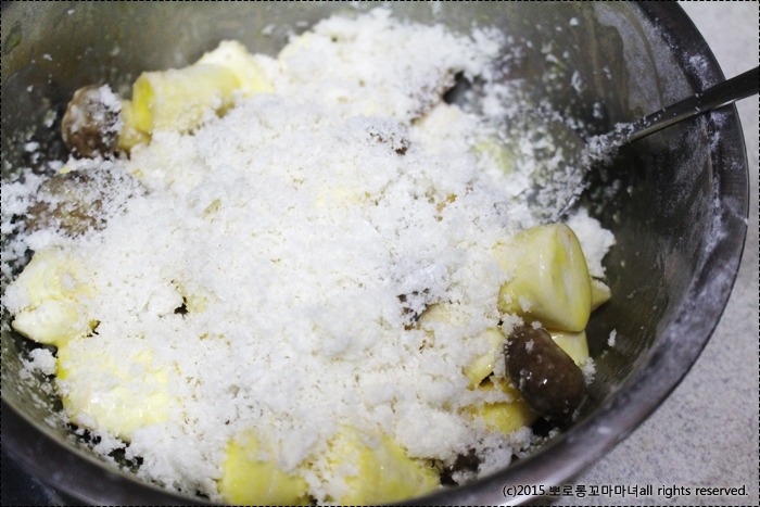 흔들흔들~~~골고로 밀가루 옷 입히고..