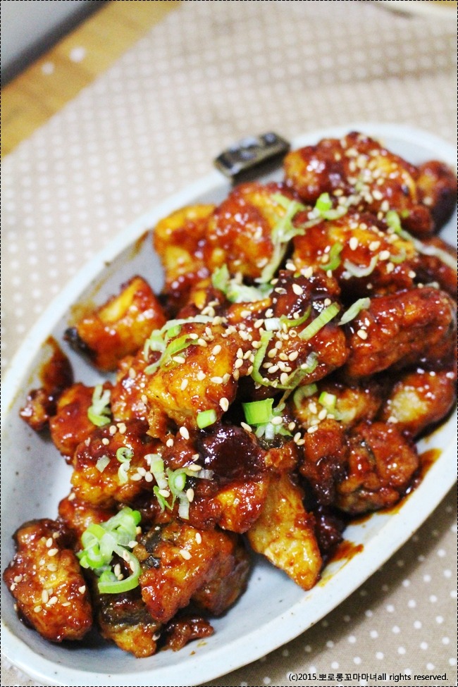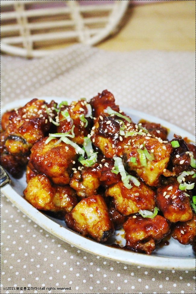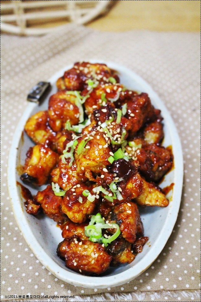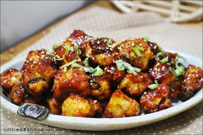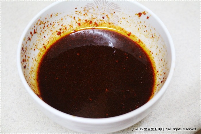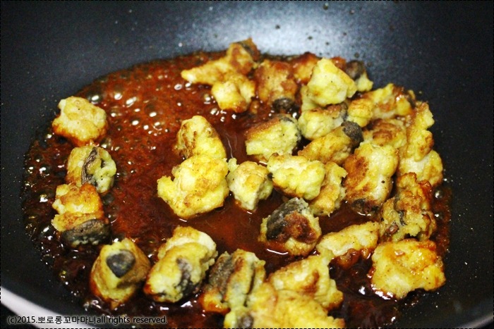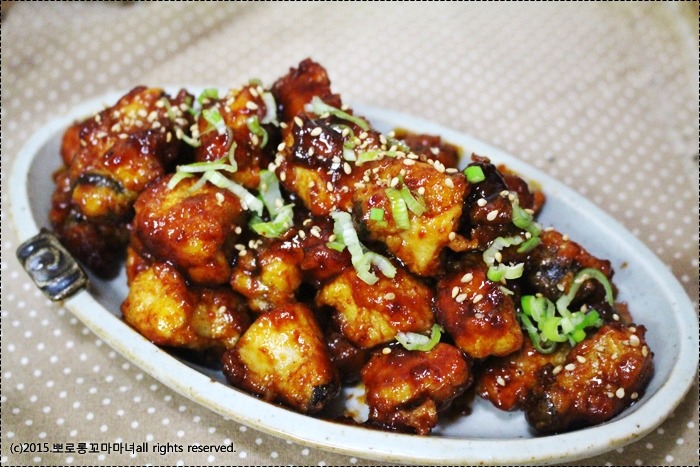 강정소스 : 고추장 2큰술, 간장 2큰술, 올리고당 3큰술, 매실청 1큰술, 참기름 1큰술, 물 3큰술