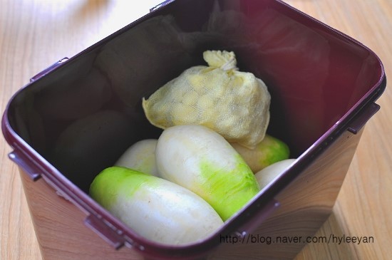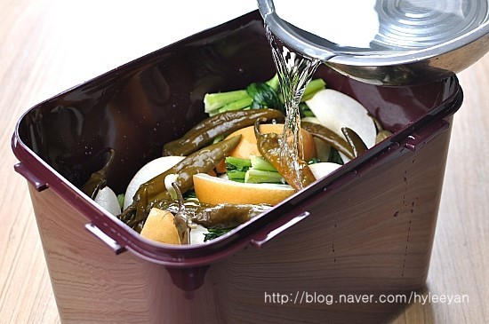 이렇게 만든 동치미는 실온에 5일 정도 두었다가 냉장보관해요.