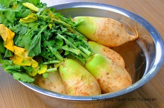 잎이 푸르고, 단단하면서 잔뿌리가 적은것이 좋은 동치미무에요.