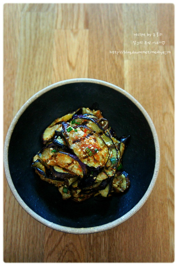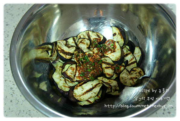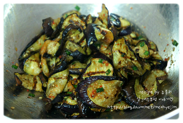 구운 가지에 매콤한 양념을 버무려서 맛있는 가지무침을 만들었어요.
