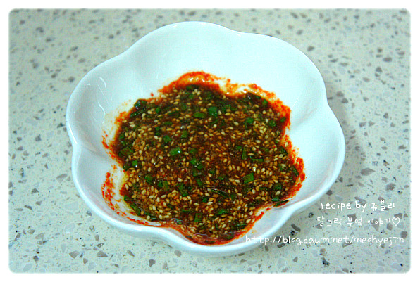 다진마늘 1/2큰술, 다진파 1/2큰술,매실액 1/2큰술, 들기름 1/2큰술, 통깨 약간을 넣고 잘 섞어서 만들었는데