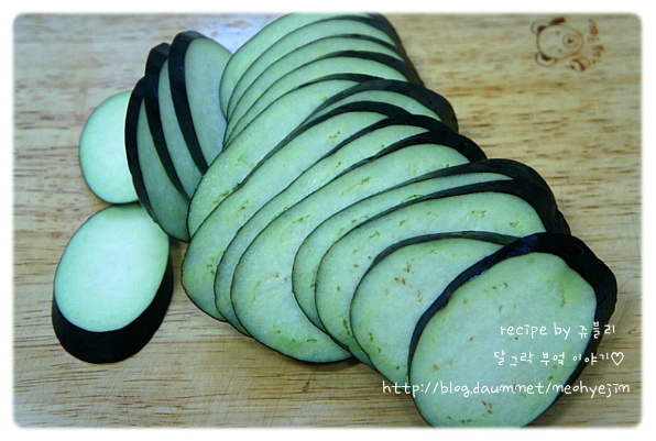 1. 가지는 깨끗하게 씻어서 물기를 뺀 다음 어슷 썰고