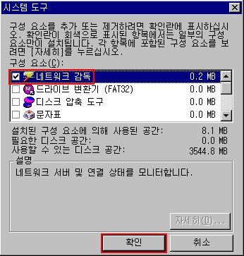 네트워크 감독은 Windows98을 설치할 때 기본 항목에 포함되어 있지 않기 때문에 설치가 안되어 있을 수도 있습니다.