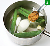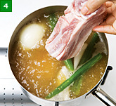 첫째는 음식재료를 끓는 물에 넣어야 하죠. 물이 차가울 때 넣게 되면 고기의 맛있는 성분이 국물로 다 빠져나가 버리기 때문입니다. 둘째는 끓는 물에 대파, 마늘 등 향신채를 넣고 함께 끓이는 것입니다. 향신채는 음식재료의 잡내를 잡아주므로 육수를 낼 때는 물론, 고기 등의 음식재료를 삶을 때도 아주 효과적이랍니다. 세 번째는 불조절 입니다. 센 불로 단시간에 익히는 것이 아니라 중간 불로 오래 익혀야 고기가 부드럽게 익습니다.