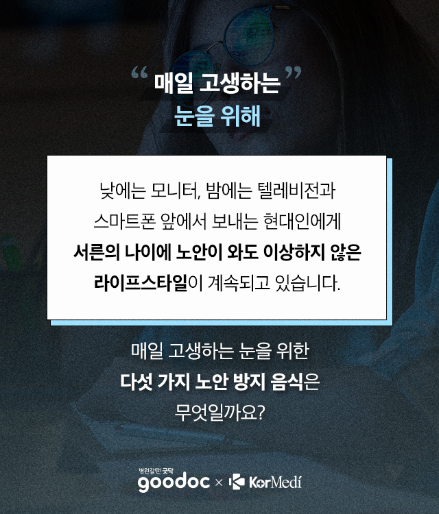 낮에는 모니터, 밤에는 텔레비전과 스마트폰 앞에서 보내는 현대인에게 서른의 나이에 노안이 와도 이상하지 않은 라이프스타일이 계속되고 있습니다.