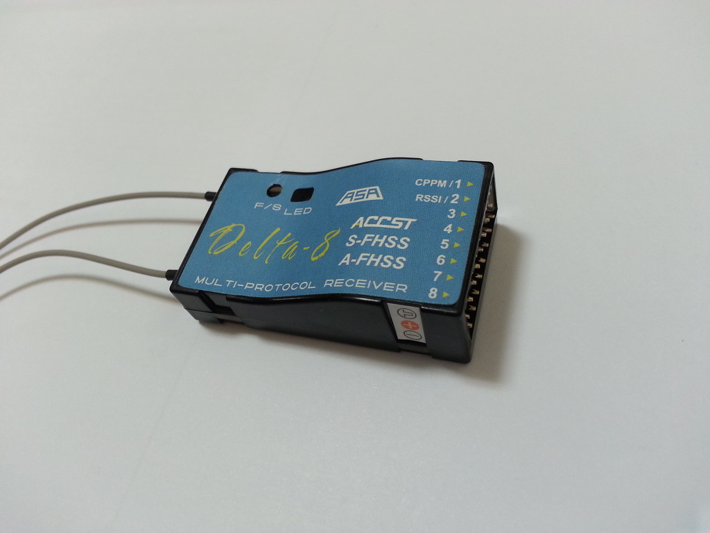 8채널에 후타바, 하이텍 등 여러 송신기에 쓸수있다길래 싼맛에 Delta-8 이라는 수신기를 구입해서 오로라9에 바인딩을 해보았습니다.