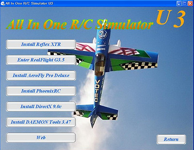 프로그램 설치는 DVD를 넣으면 자동 실행되도록 되어있었고 간단한 메뉴형식으로 누구나 쉽게 설치가능합니다. 또한 DVD 한장에는 Reflex XTR, RealFligt G3.5, AeroFly Pro Deluxe, PhoenixRC등이 있습니다.