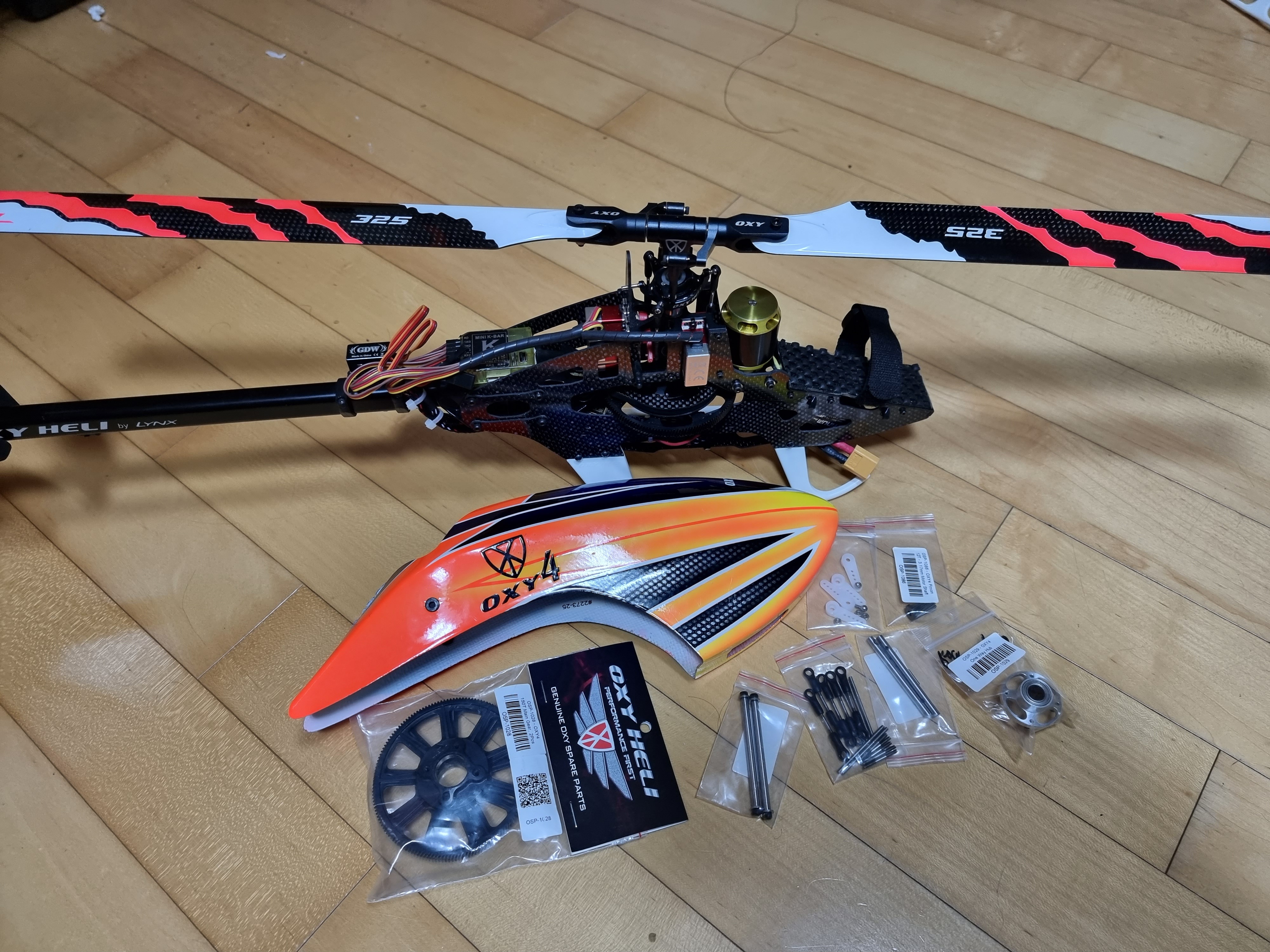 사진에 보이는 부품 : 메인기어 페더링샤프트 테일샤프트 링키지 등입니다..