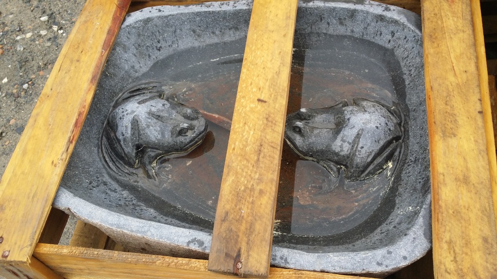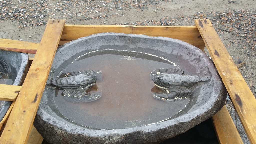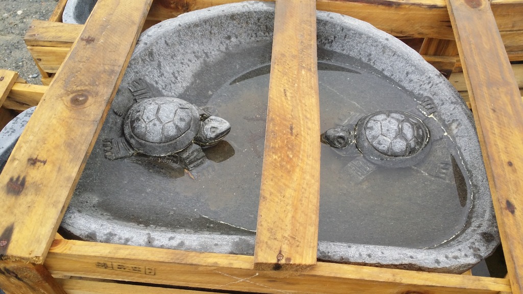 사이즈는 좌우 폭60~70, 높이25~30 정도 인 주상절리 라는 돌로 제작된 동물 수반이지요.