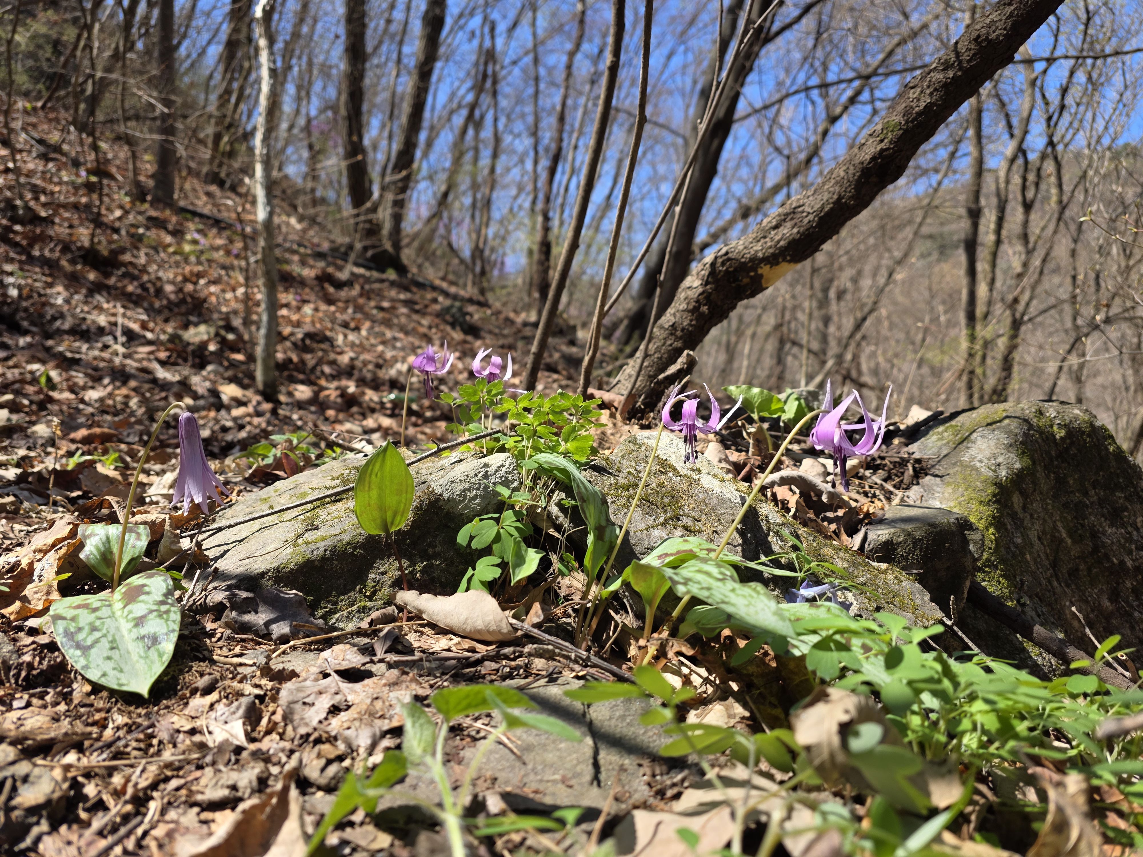 간밤에 추웠을 얼레지가 축 늘어져있네요...