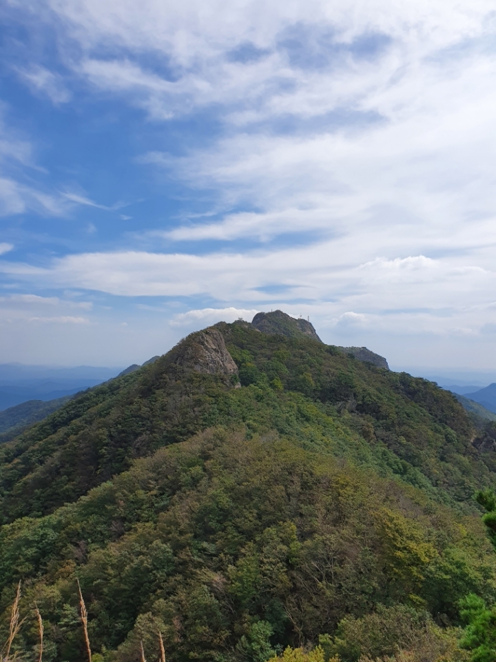 좌측 능선은 천황봉인데 입산 금지구역이다.