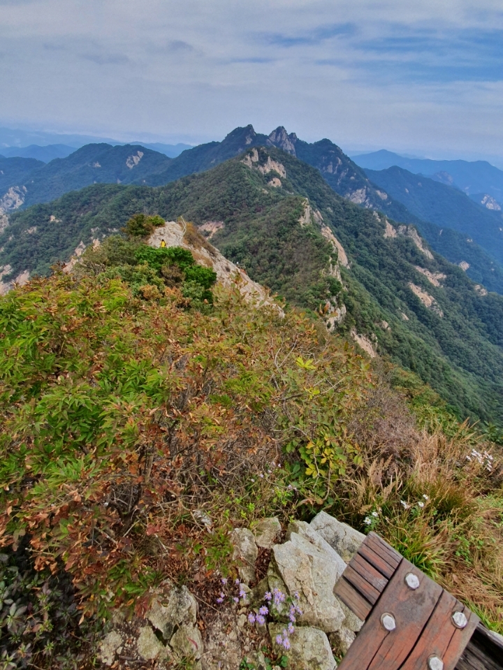 주변의 풍광은 참으로 아름답지만 경사가 심하고 능선이 칼날같이 가파라서 안전에 절대 유의해야 하는 곳이었다. 바람이 세게 불던 날 걷던 기억과는 다르게 지금은 등산로가 잘 정비되어 보행하기가 아주 편하다.