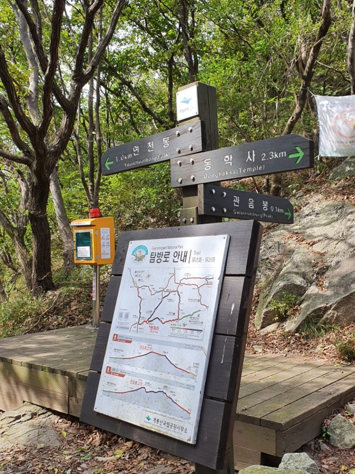 관음봉 코스는 아주 가파른 오르막 길이지만 돌계단이 잘 되어있고 경사가 아주 급한 곳은 철계단이 되어있어 등반하기가 한결 수월하다.