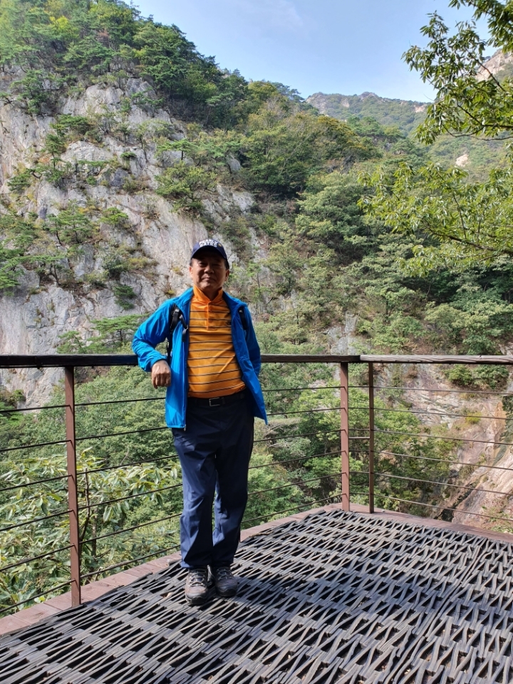흰옷 입은 등산객이 가파른 긴 계단을 몇 차례나 쉬어가며 오르는 모습을 눈여겨 보니 남의 일 같지 않게 이채롭다.