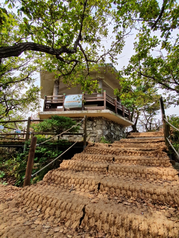 힘들게 올라와 이 높은 곳에 쉴 수 있는 정자가 있어 반가웠는데 코로나 방역을 위해 출입을 원천 봉쇄하였다.
