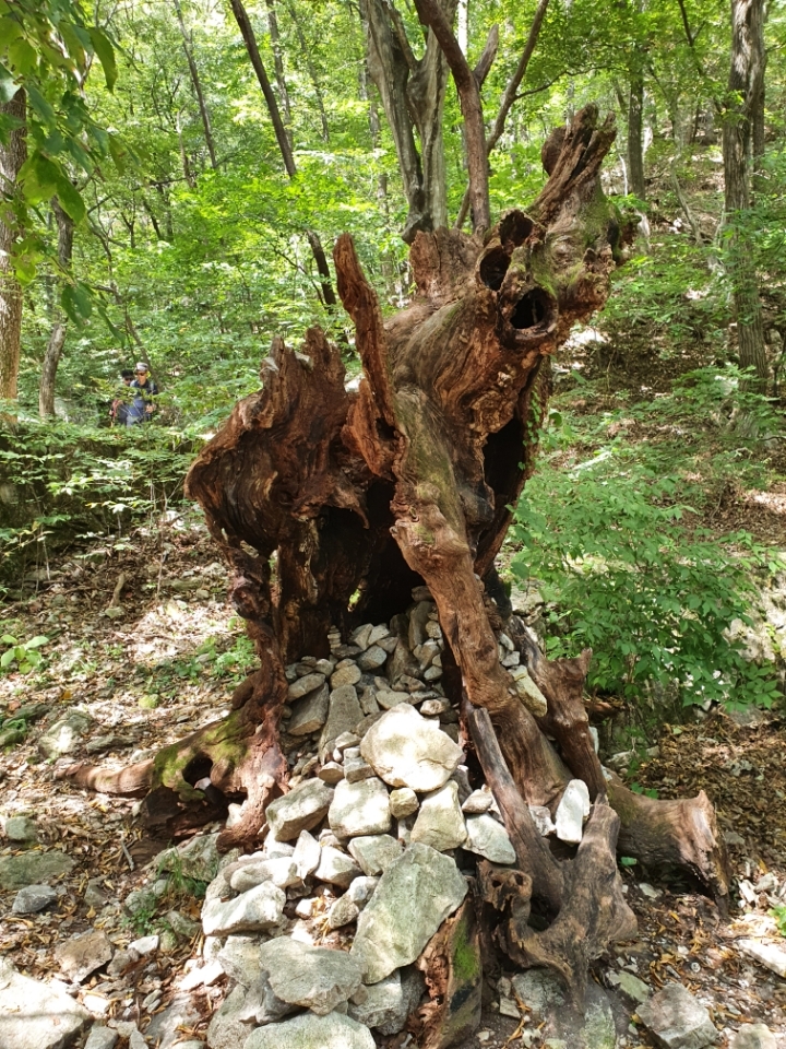 예전 은선폭포 대피소가 있던 부근인데 고목 등컬이 수 많은 돌을 품어 안고 있는 모습이 왠지 애잔하고 찡하다.