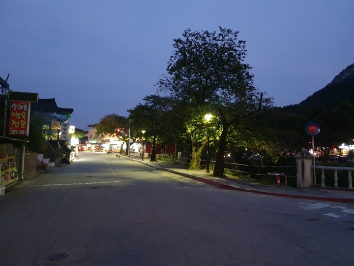 어둠이 내린 동학사 상가