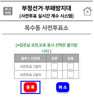사전투표일 오전,오후 참관 선택 등록