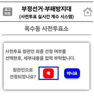 참관인으로 선정되어 투표소 참관이 가능한 경우 관내를 선택