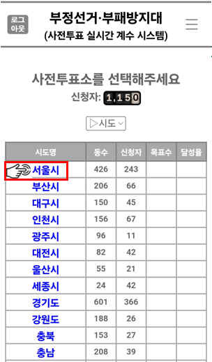 관내 사전투표자 수 카운트