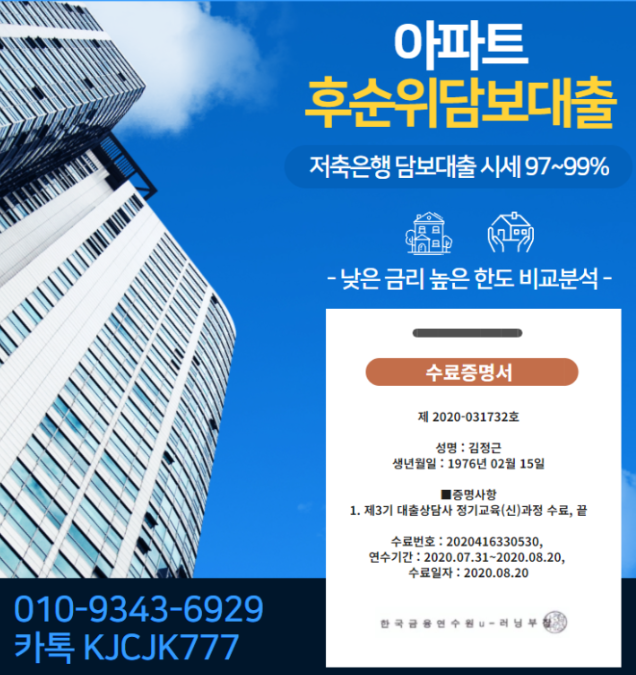 은행뒤로 후순위담보대출 문의를 많이 주시고있습니다