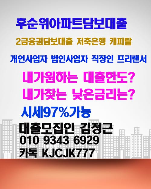 오늘은 아파트추가담보대출 후순위담보대출 상품에 대해서 포스팅을 하겠습니다
